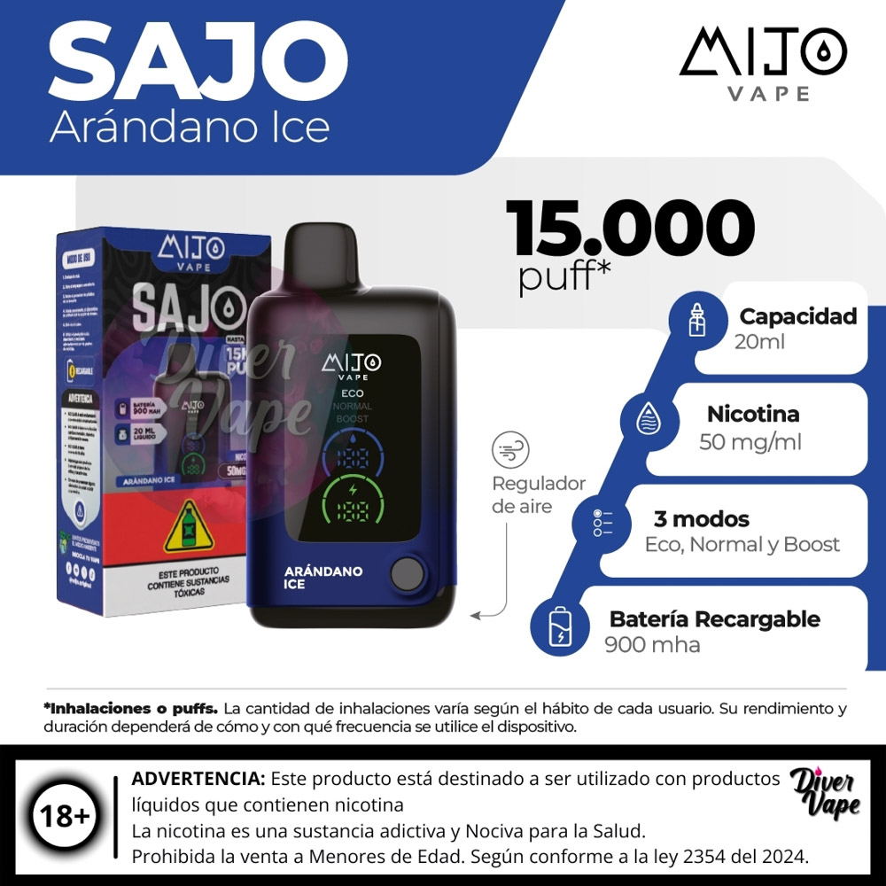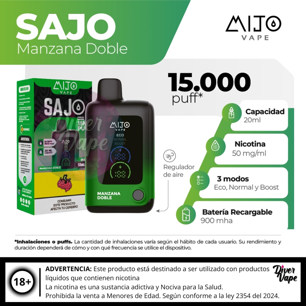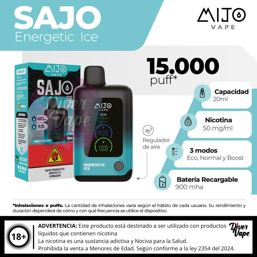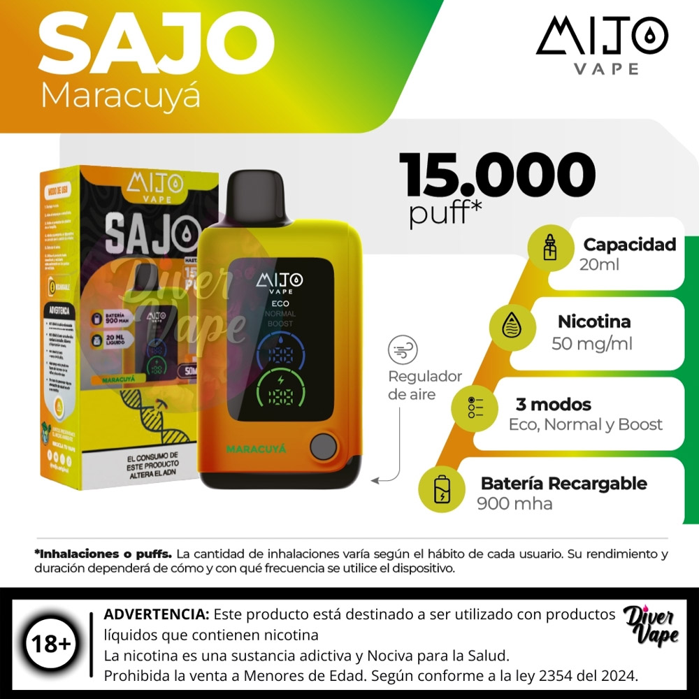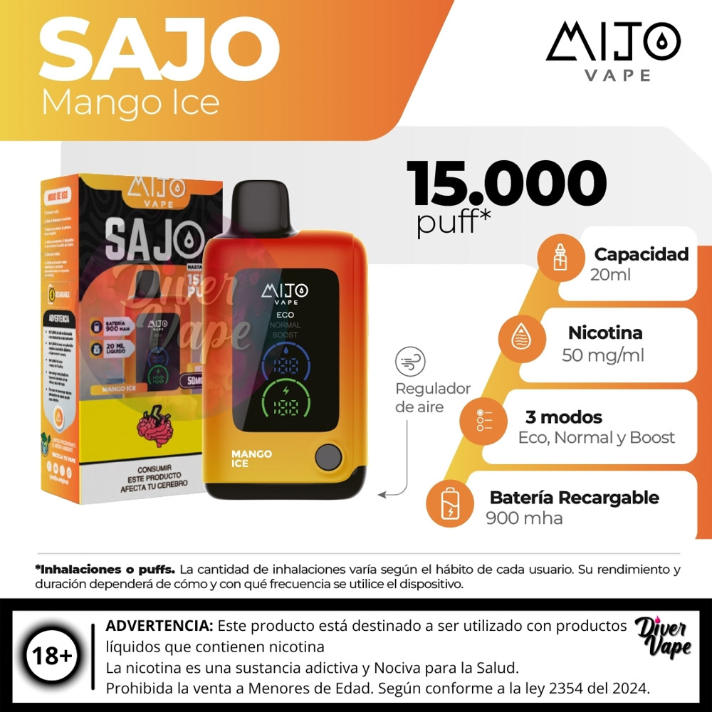 El MIJO VAPE Sajo 15.000 Puff es un dispositivo de vapeo desechable de ultra larga duración, diseñado para ofrecer una experiencia prolongada y de alto rendimiento.