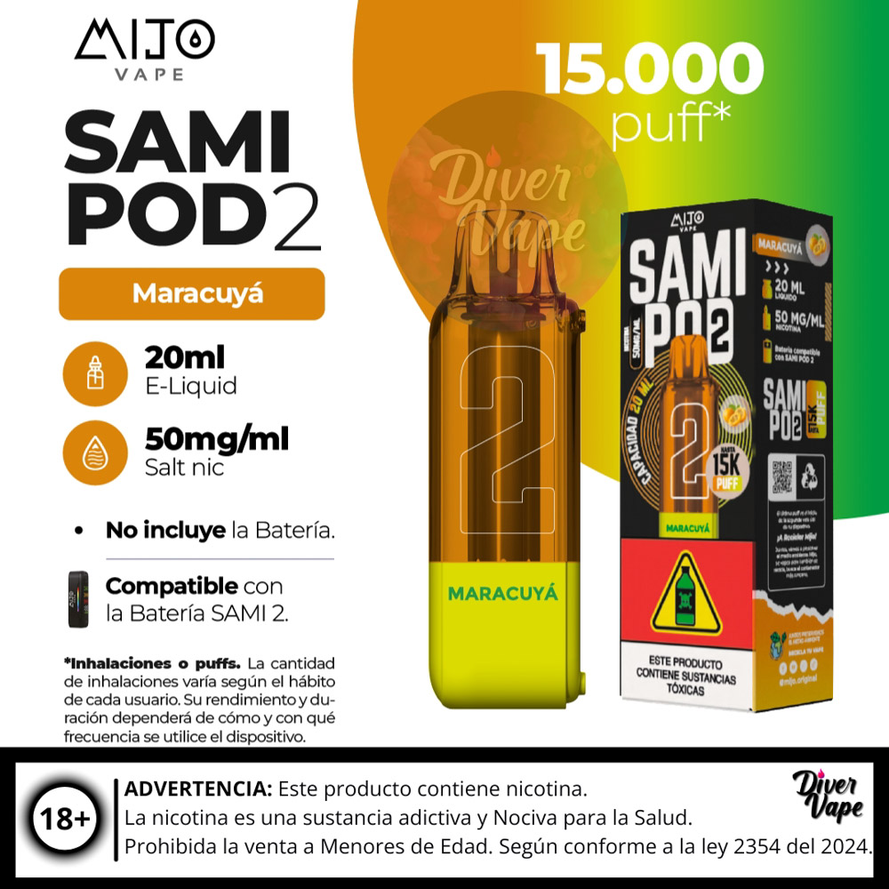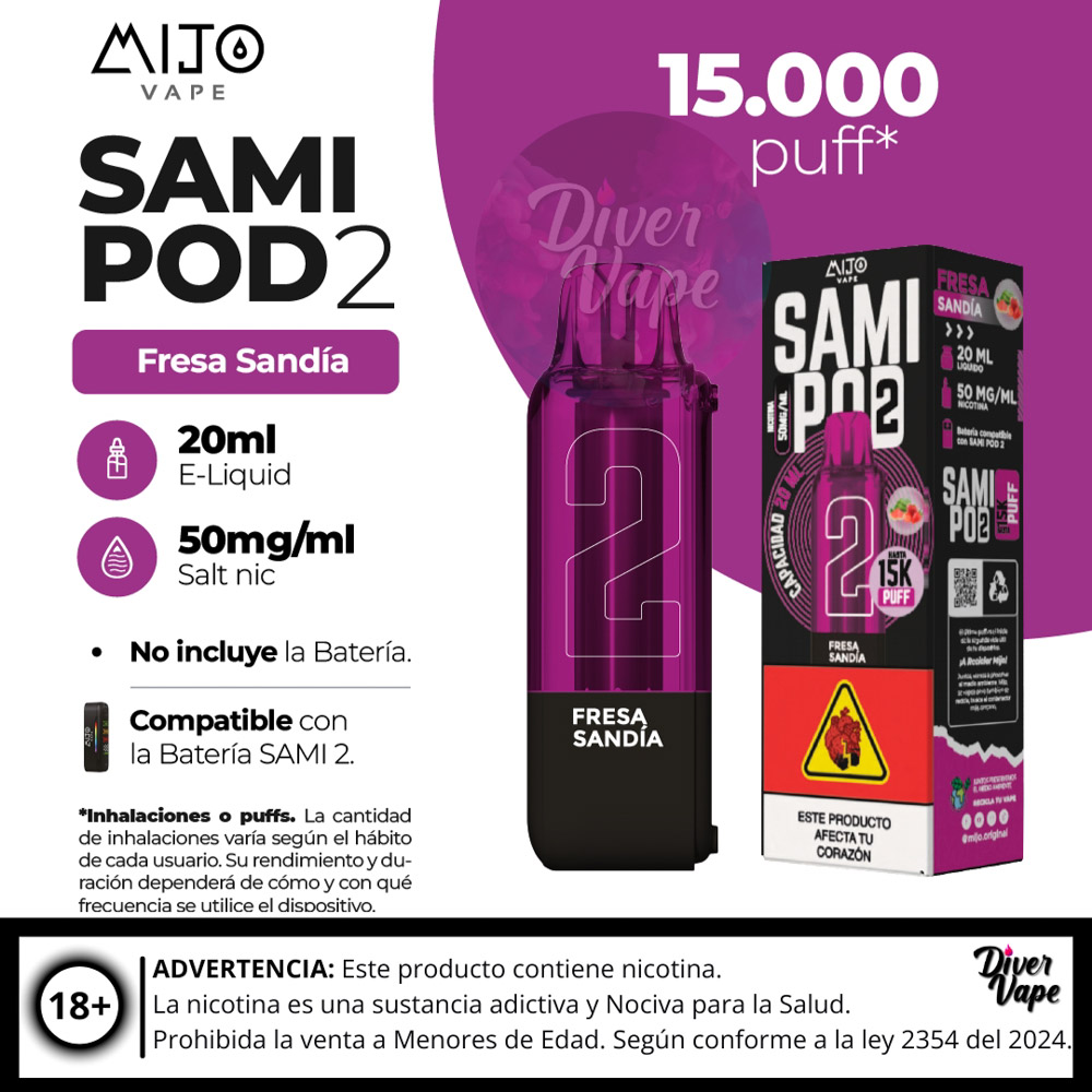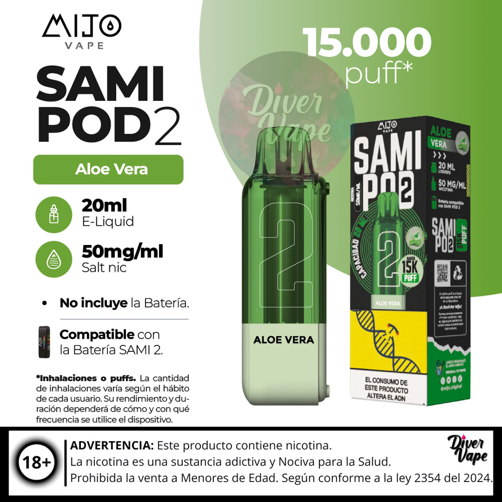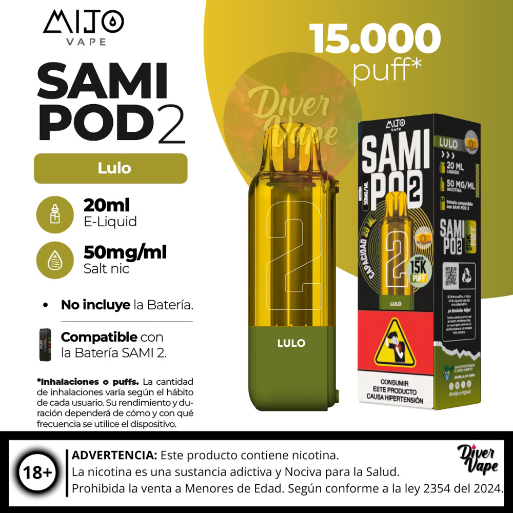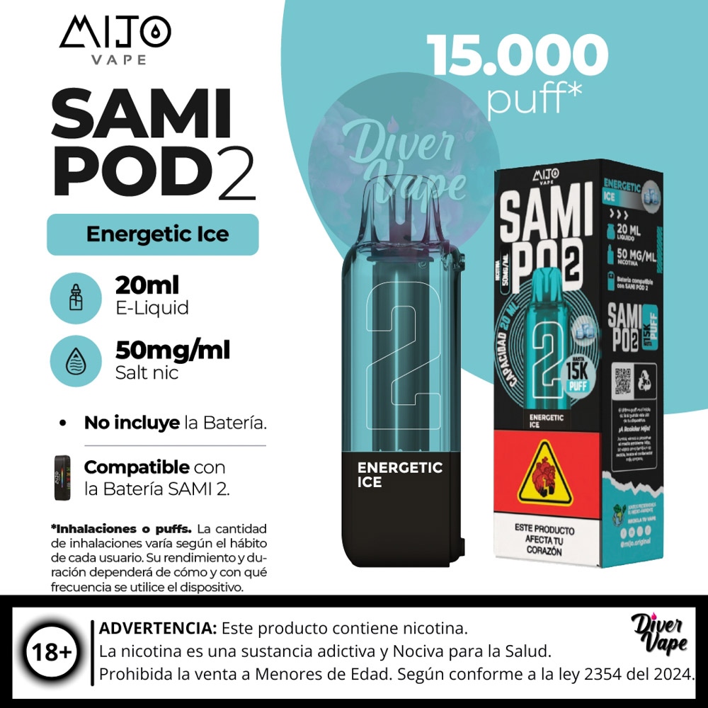 El MIJO VAPE Sami Pod 2 es un cartucho de repuesto precargado diseñado para usarse exclusivamente con la Batería SAMI 2 de la marca colombiana Mijo Vape.