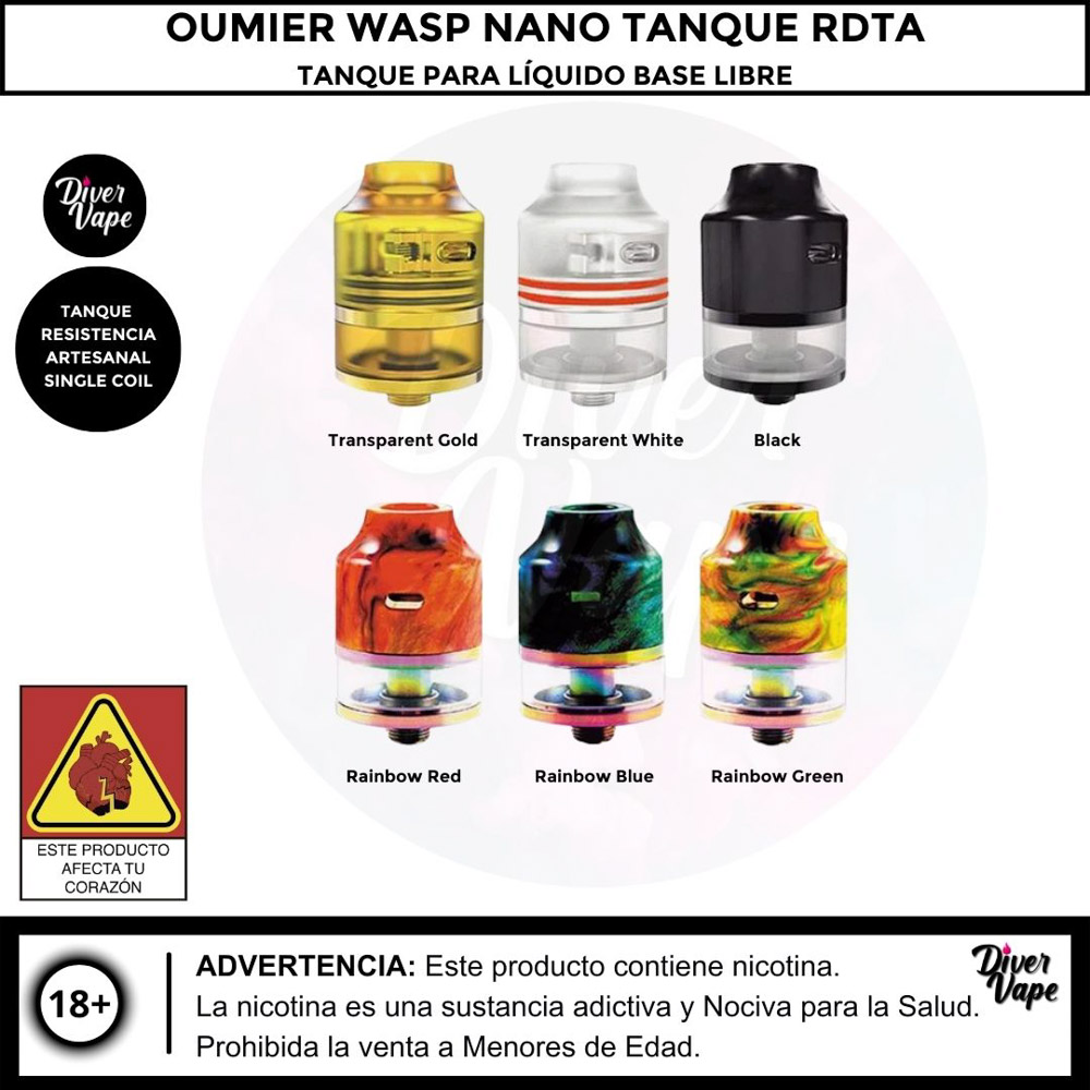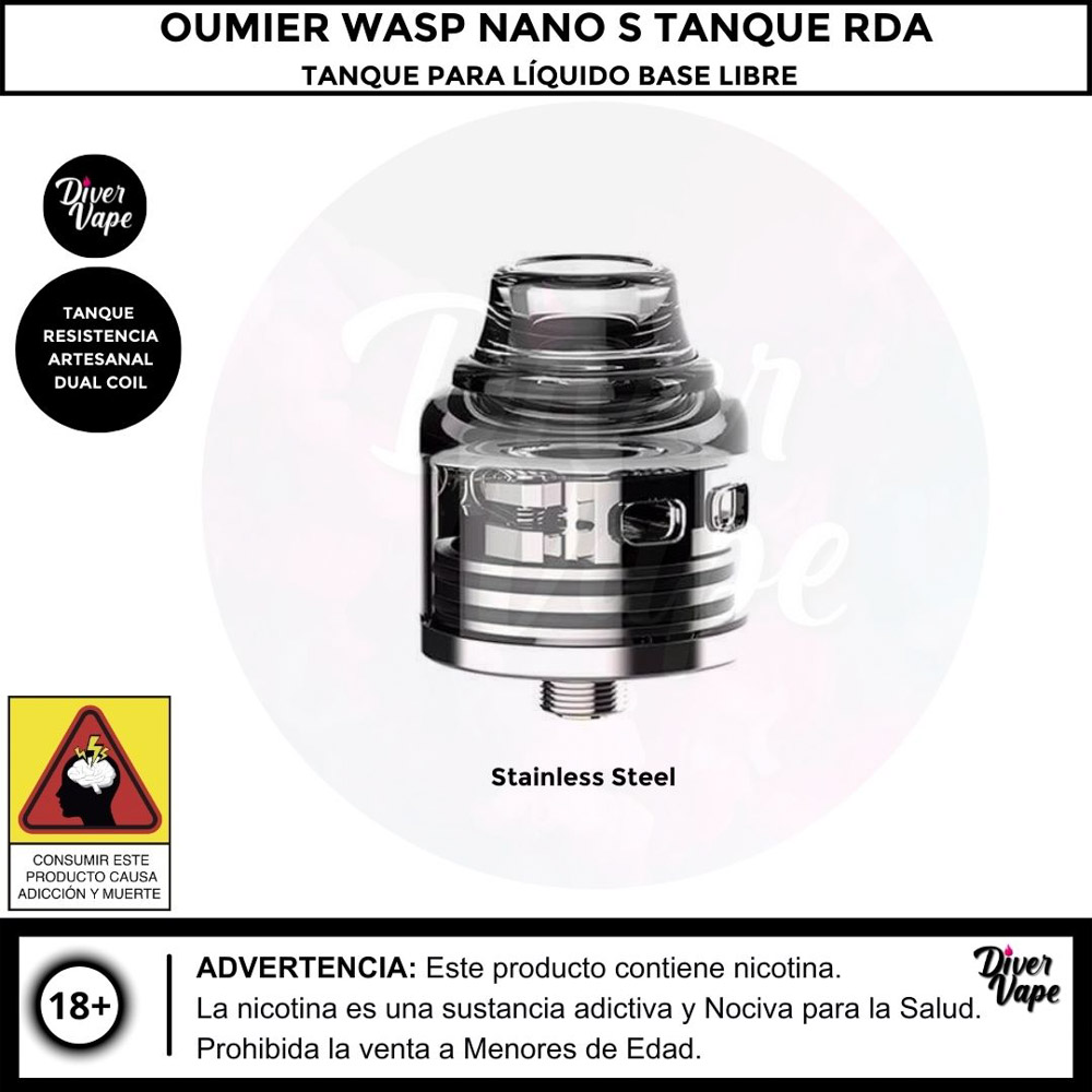 El Oumier Wasp Nano S RDA es un atomizador de dripeo reconstruible (RDA) conocido por ser una versión de doble resistencia (dual coil) que ofrece un excelente sabor y es fácil de montar. Es una opción popular tanto para principiantes como para vapeadores experimentados.