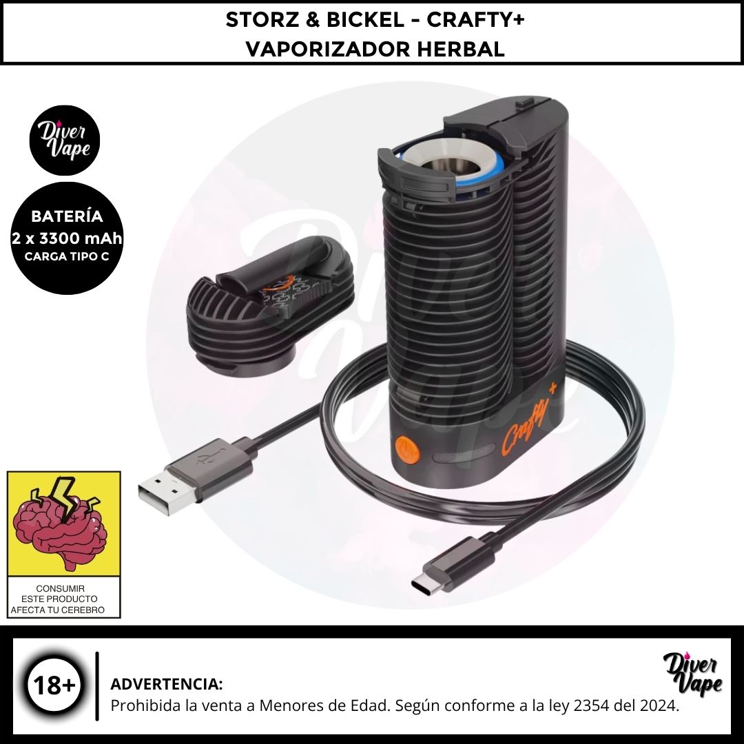 El CRAFTY+ de Storz & Bickel es un vaporizador portátil de alto rendimiento diseñado para ofrecer una excelente calidad de vapor en un formato compacto. Alimentado por batería, es el compañero perfecto para usar en cualquier lugar sin sacrificar potencia ni calidad.