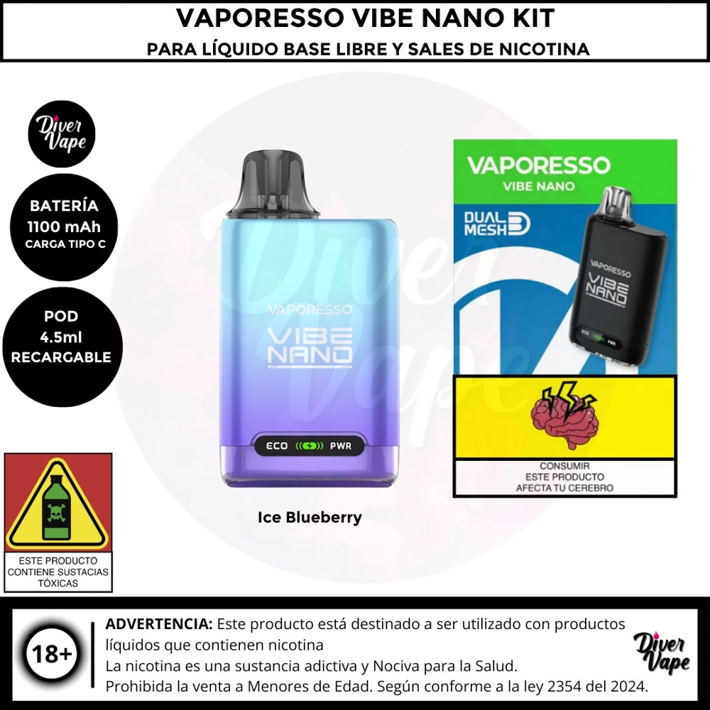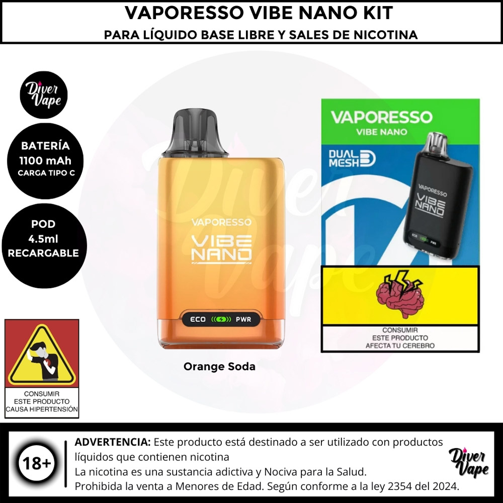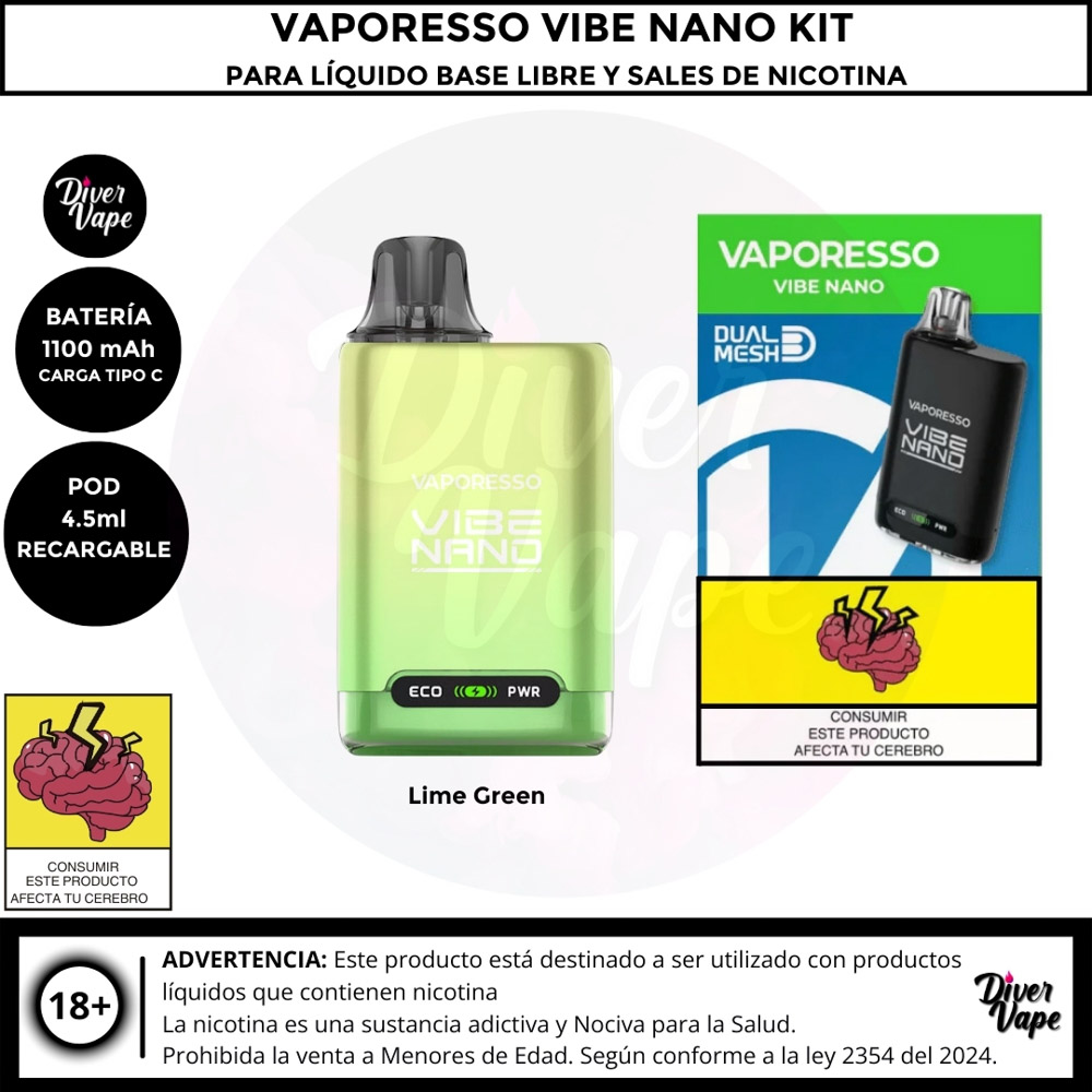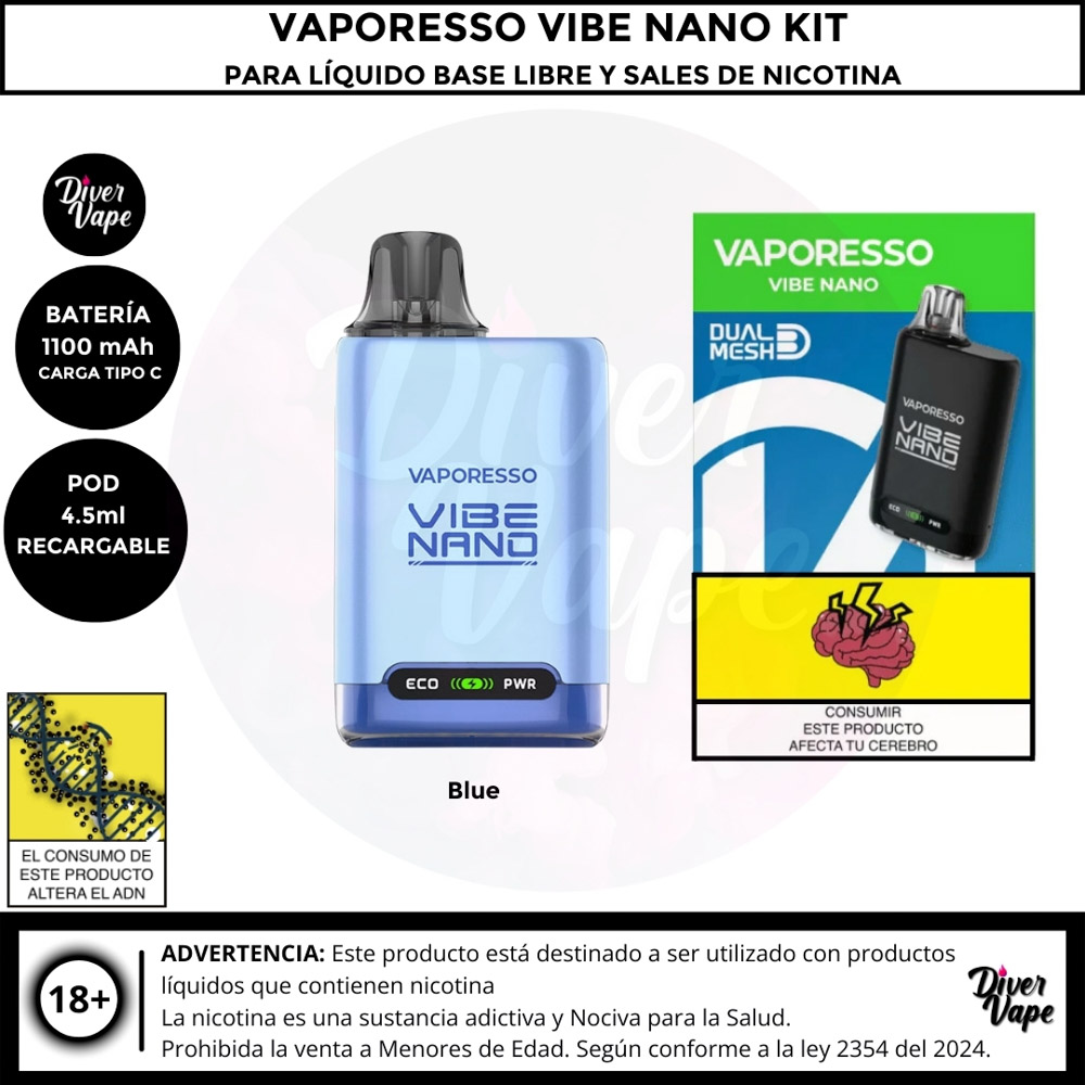 Equipo Vaporesso Vibe Nano Kit para Líquido Base libre y Líquidos sales de Nicotina