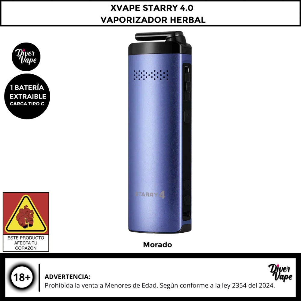 El Xvape Starry 4.0 es un vaporizador portátil versátil, de doble uso (para hierbas secas y concentrados) y reconocido por su excelente relación calidad-precio. Es una opción popular tanto para principiantes como para usuarios experimentados que buscan un dispositivo fiable y con funciones avanzadas en un formato compacto.