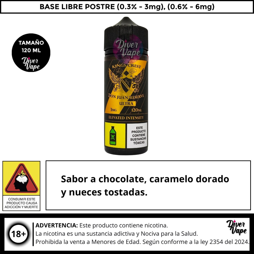 Ingredientes: Propilenglicol USP (PG), Glicerina vegetal USP (VG), Nicotina UPS y extractos de grado alimenciticio.