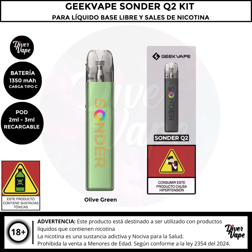 Equipo Geekvape Sonder Q2 Kit para Líquido Base libre y Líquidos sales de Nicotina