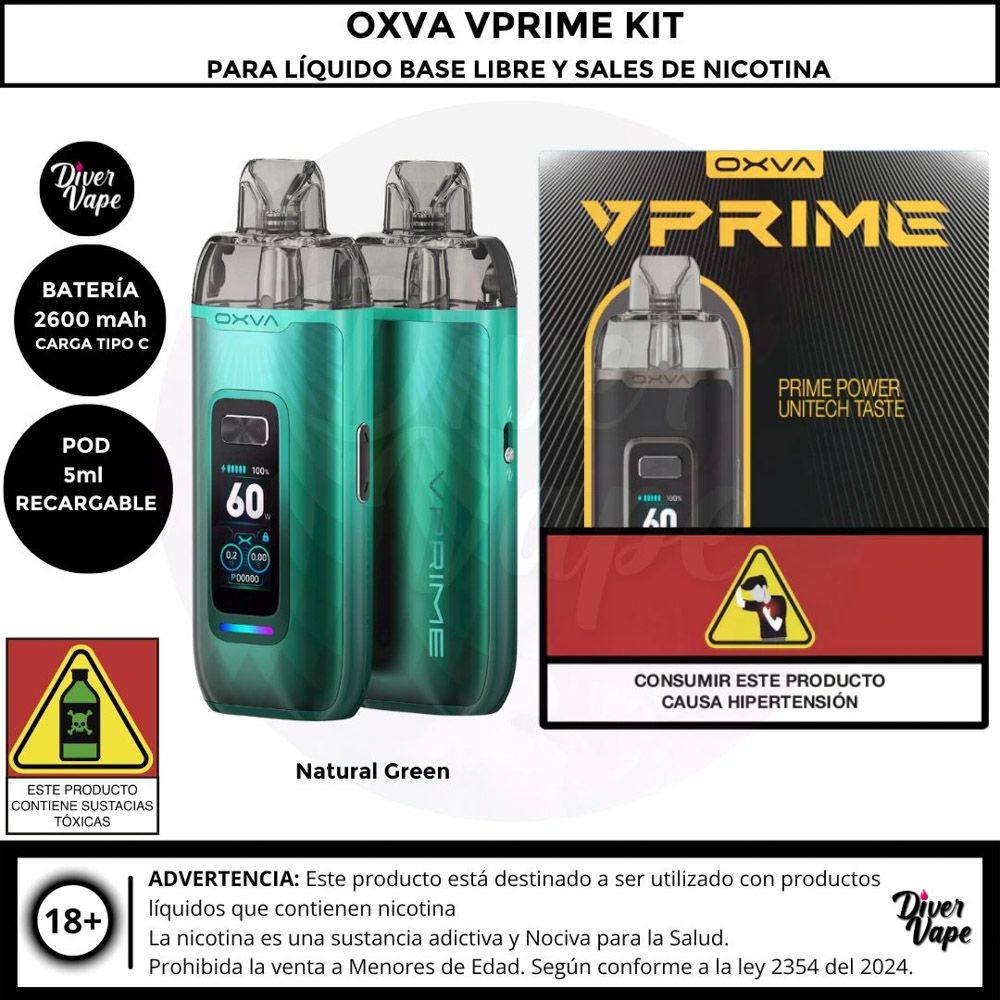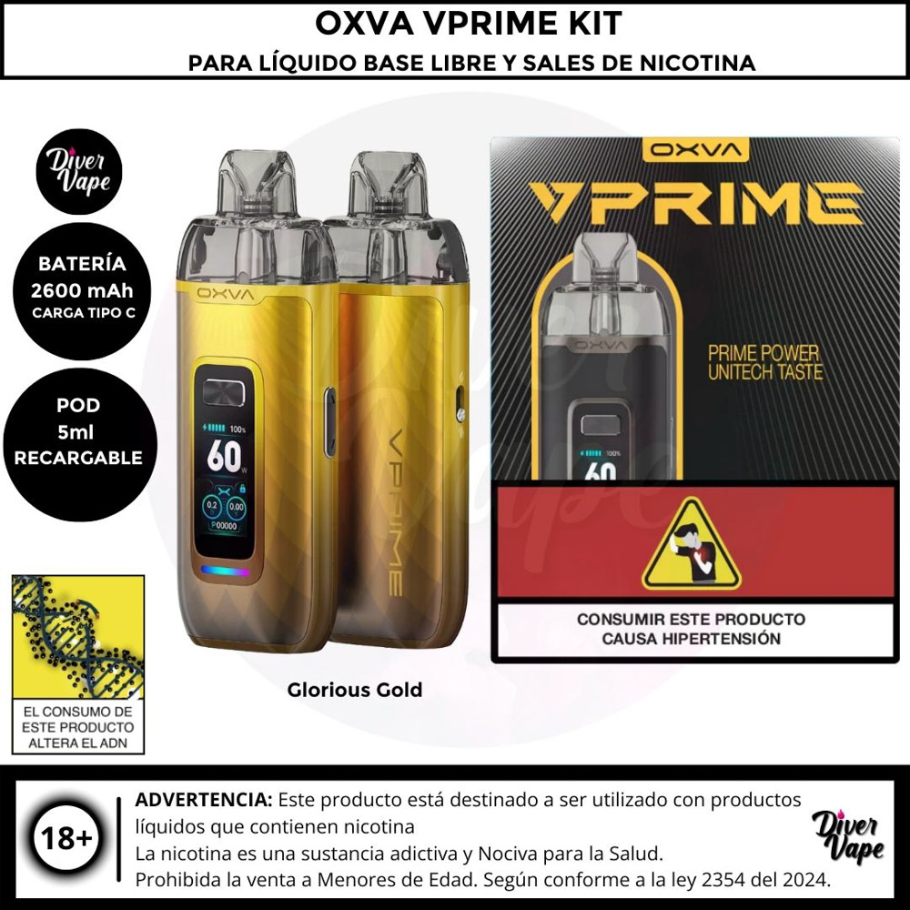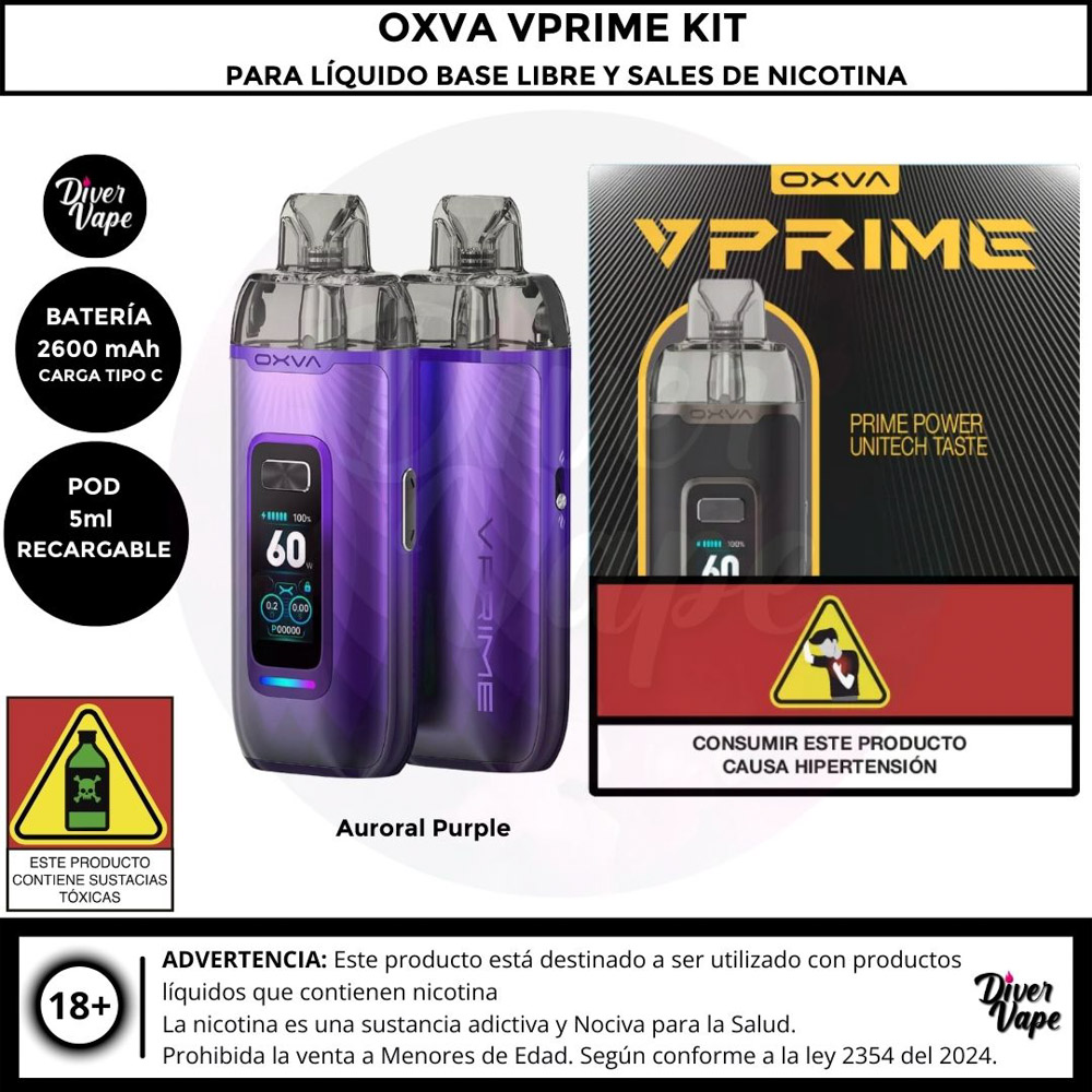 El Oxva VPRIME esta diseñado para ofrecer una experiencia excepcional tanto para principiantes como para vapeadores experimentados. El kit de cápsulas OXVA Vprime combina características innovadoras con un diseño elegante. Con una potencia máxima de salida de 60 W, ofrece una producción de vapor y un sabor satisfactorios, ideal para sesiones de vapeo directo a pulmón (DTL). El dispositivo está equipado con una batería de 2600 mAh, que garantiza un rendimiento duradero, y admite carga rápida a través de un puerto Tipo-C, lo que minimiza el tiempo de inactividad entre sesiones