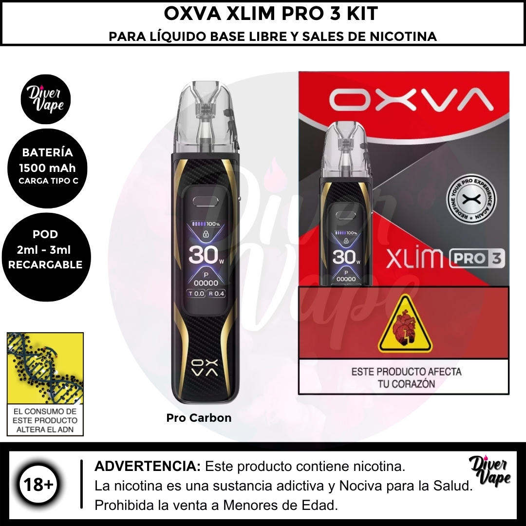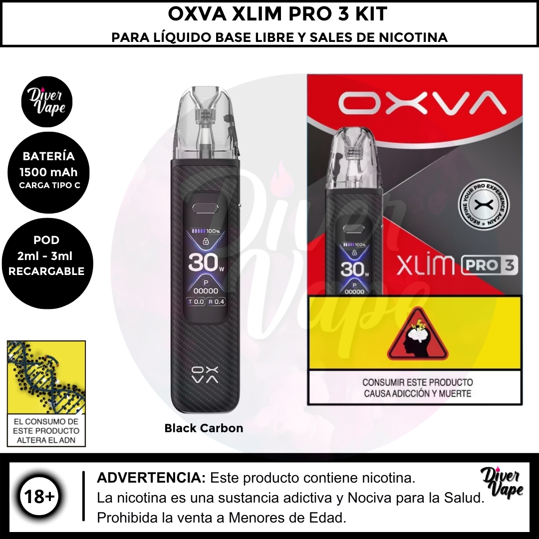 Equipo OXVA Xlim Pro 3 Kit para Líquido Base libre y Líquidos sales de Nicotina