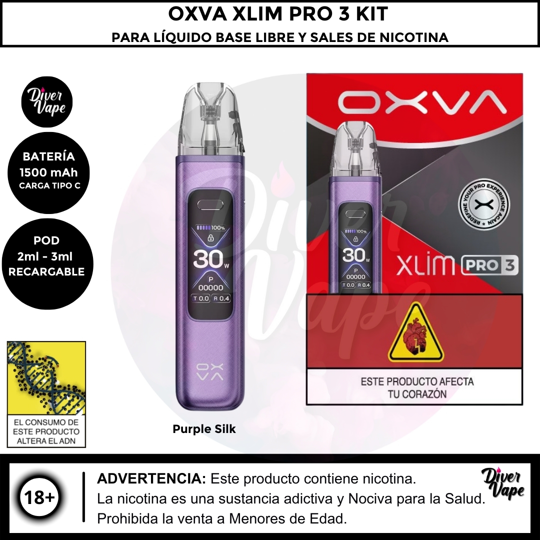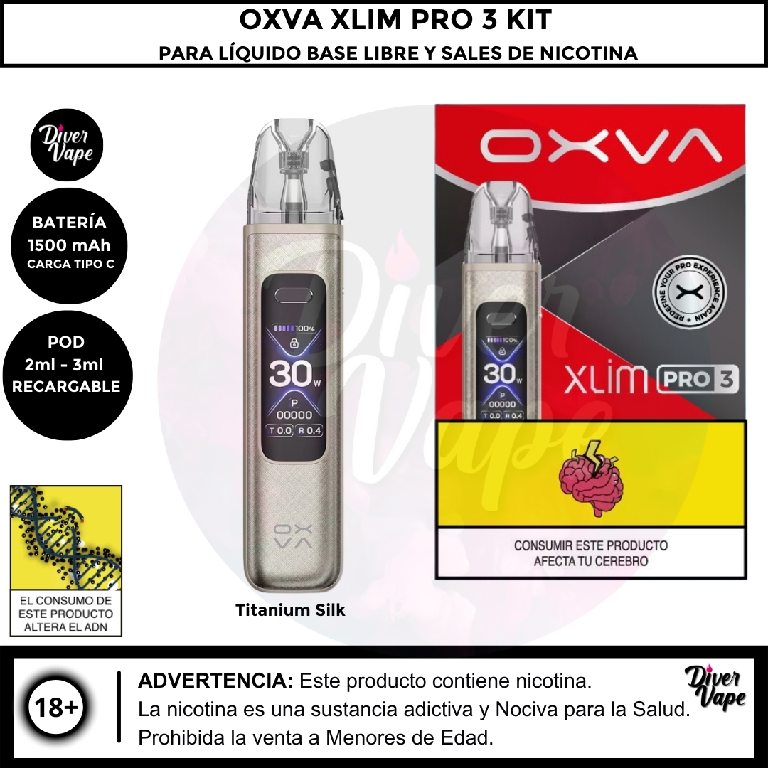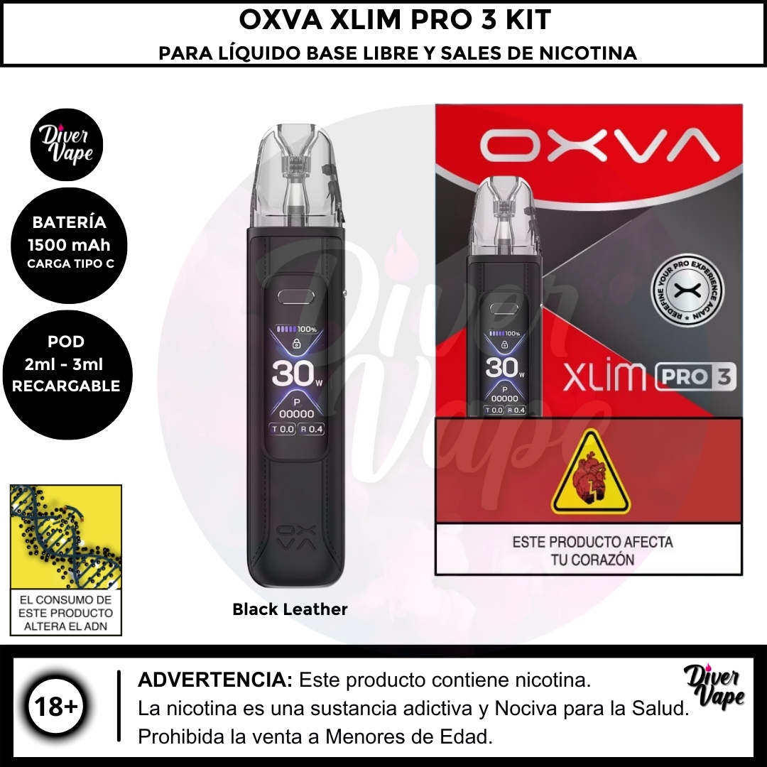 El kit OXVA Xlim Pro 3 es un sistema de pod recargable que ofrece un equilibrio entre simplicidad y rendimiento avanzado, con una pantalla HD de 1.05″, el sistema Pulse System para un sabor consistente y una batería de 1500 mAh con carga rápida. Es una excelente opción para usuarios que buscan un dispositivo fiable y fácil de usar.