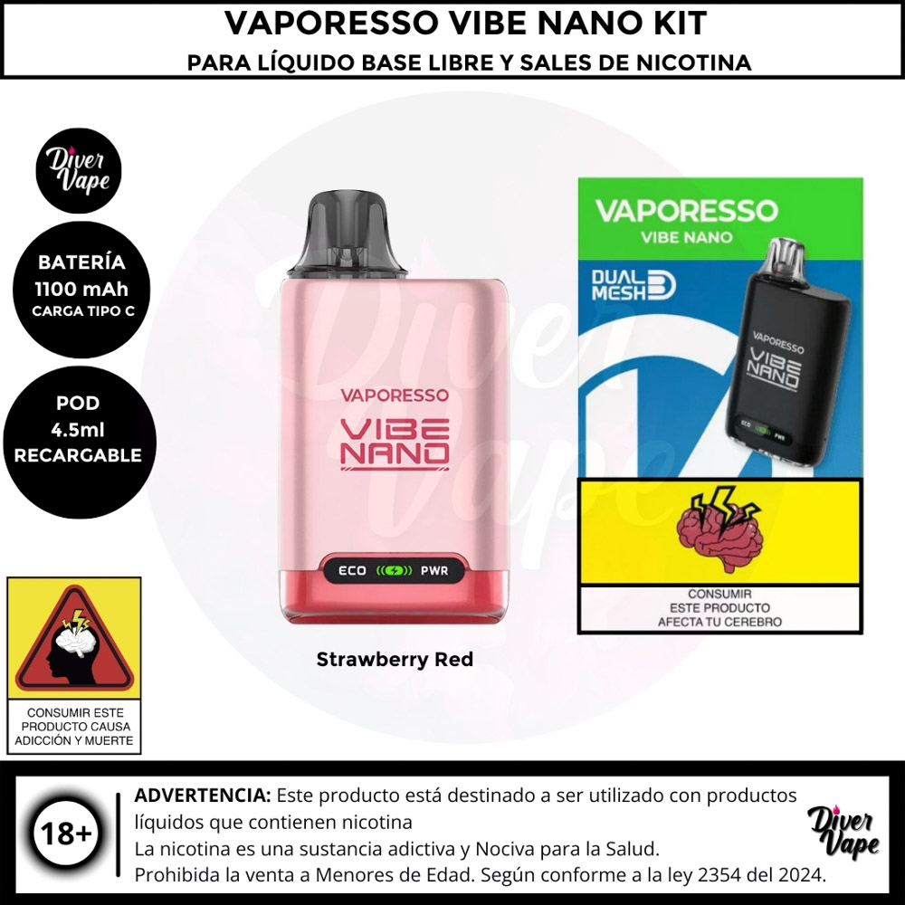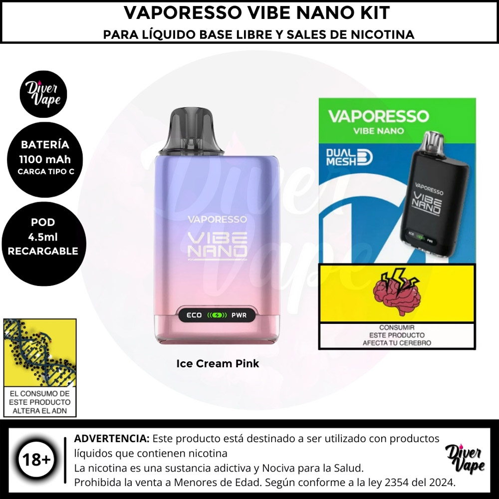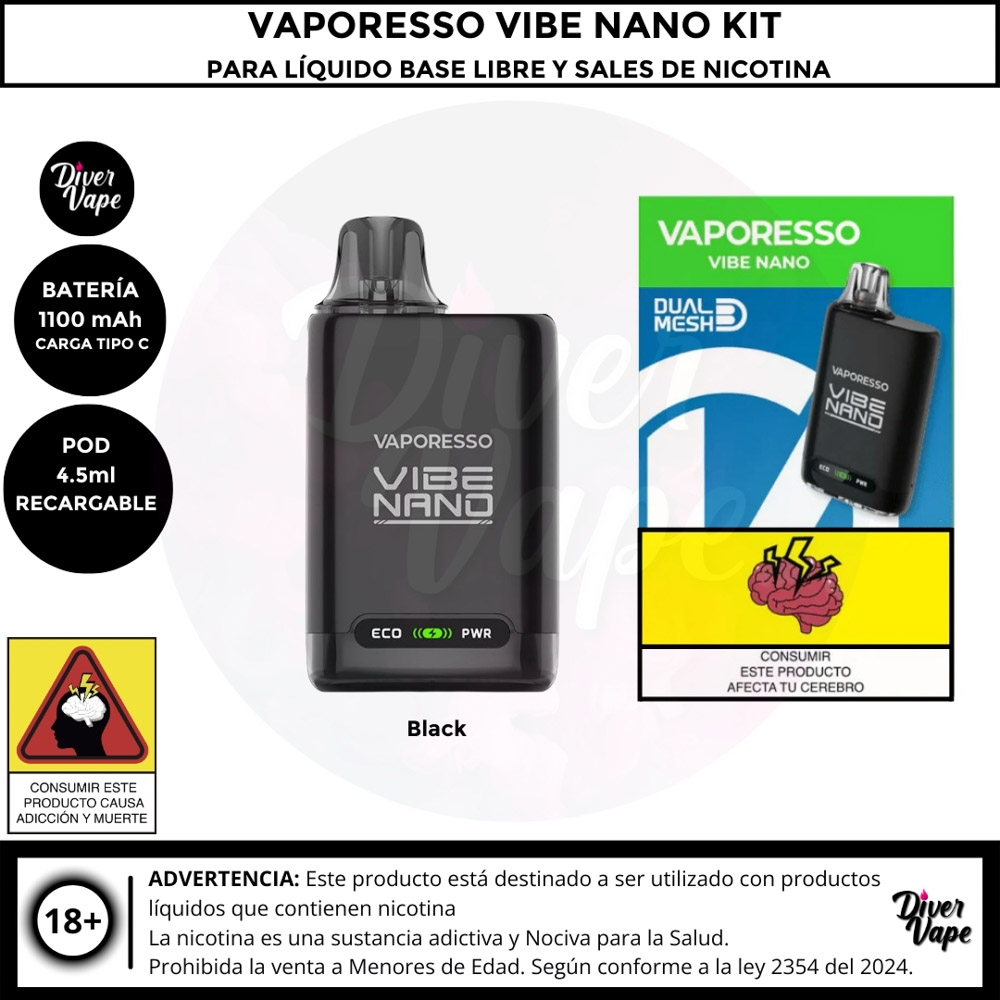 Equipo Vaporesso Vibe Nano Kit para Líquido Base libre y Líquidos sales de Nicotina