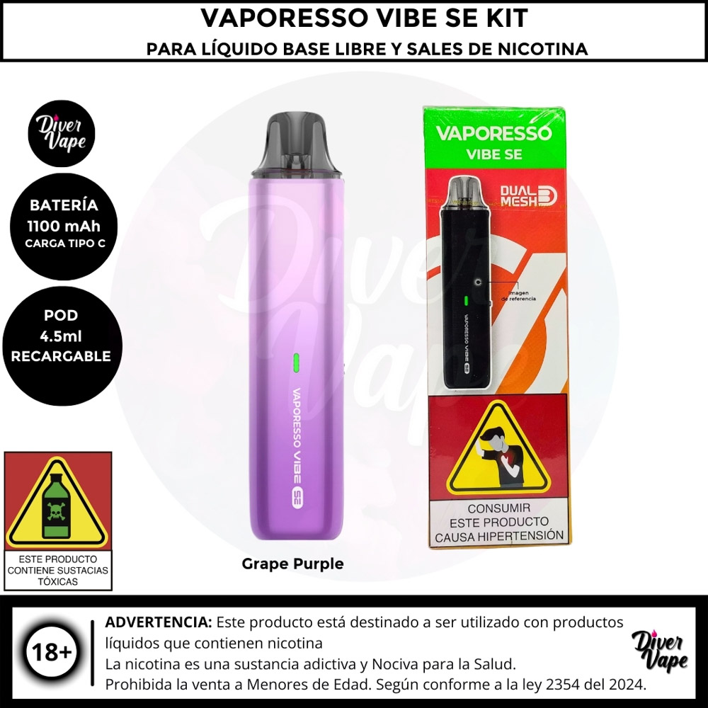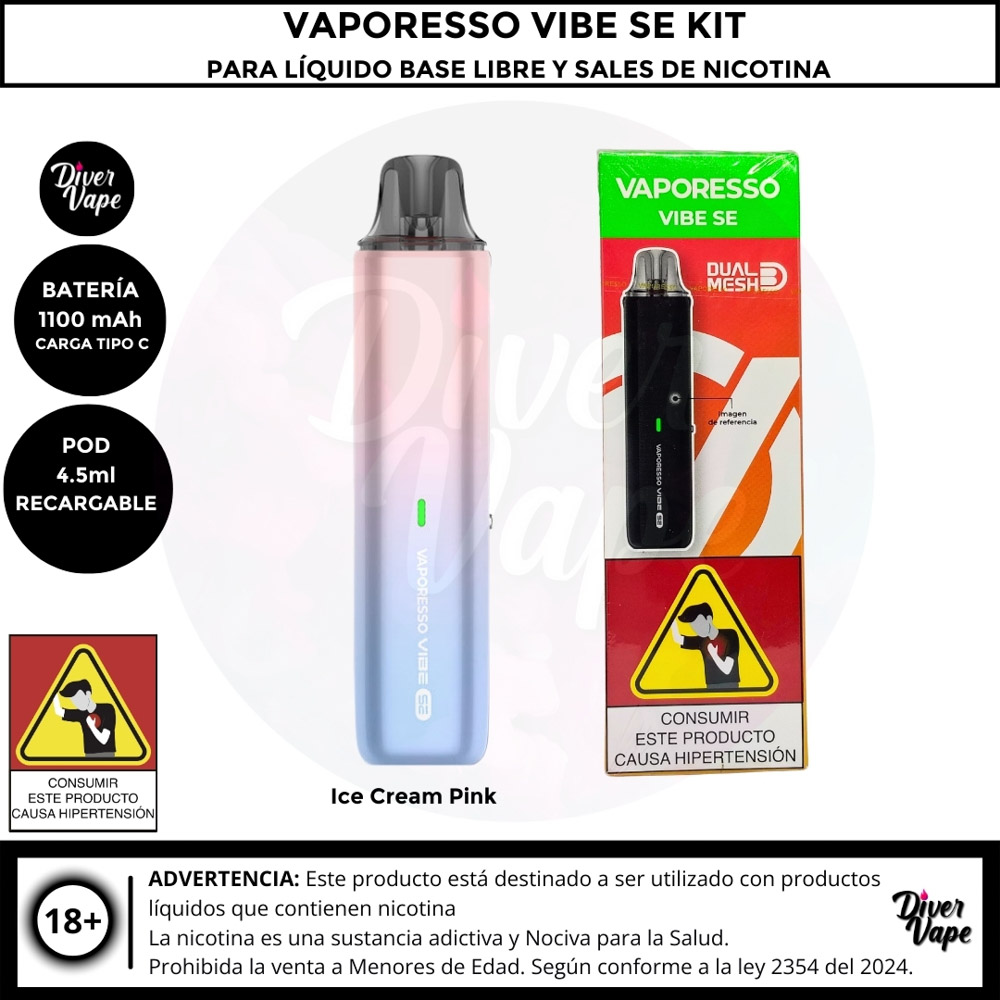 Equipo Vaporesso Vibe SE Kit para Líquido Base libre y Líquidos sales de Nicotina