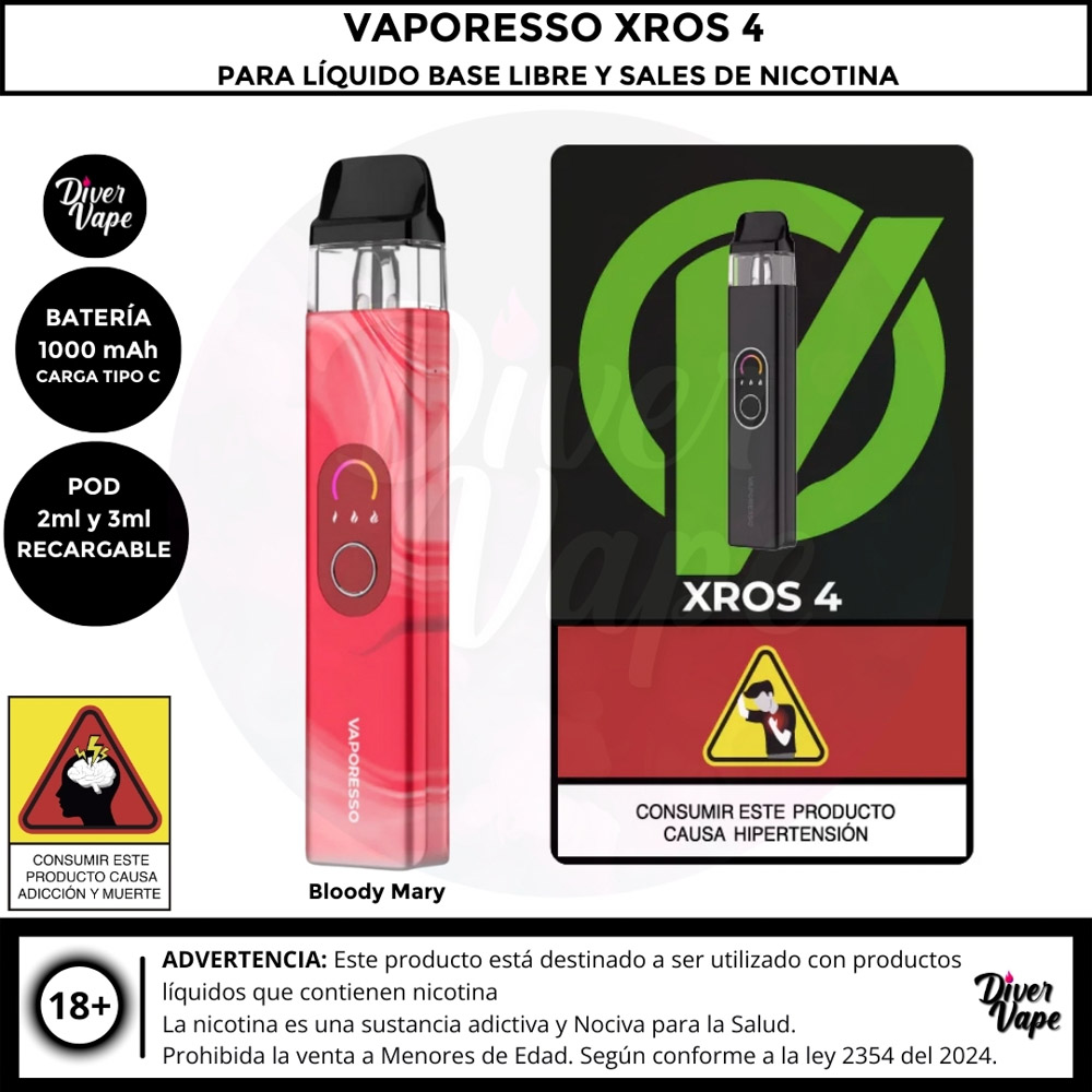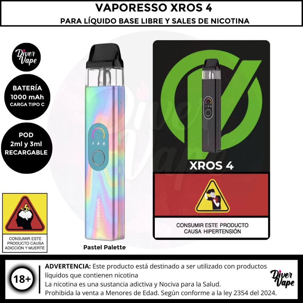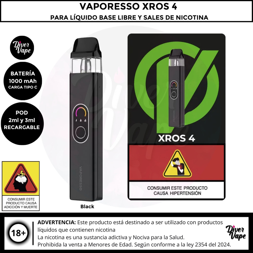 Equipo Vaporesso XROS 4 Kit para Líquido Base libre y Líquidos sales de Nicotina