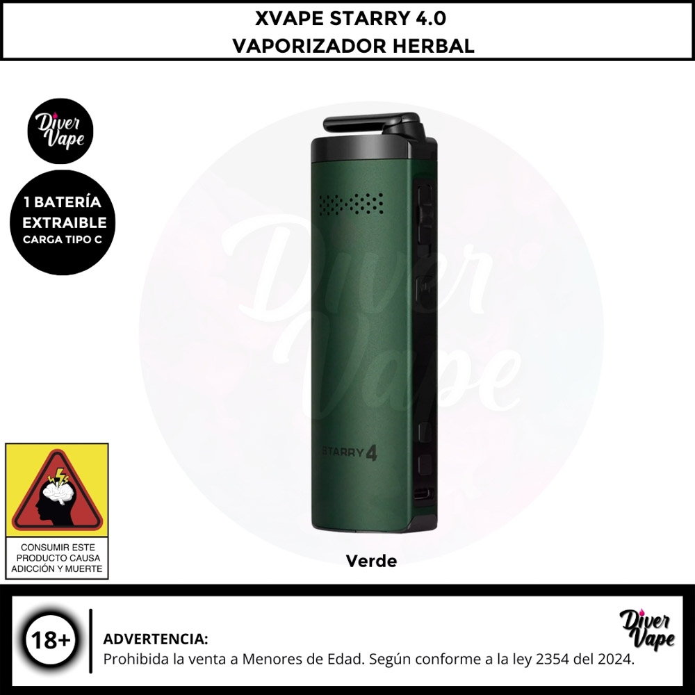 El Xvape Starry 4.0 es un vaporizador portátil versátil, de doble uso (para hierbas secas y concentrados) y reconocido por su excelente relación calidad-precio. Es una opción popular tanto para principiantes como para usuarios experimentados que buscan un dispositivo fiable y con funciones avanzadas en un formato compacto.