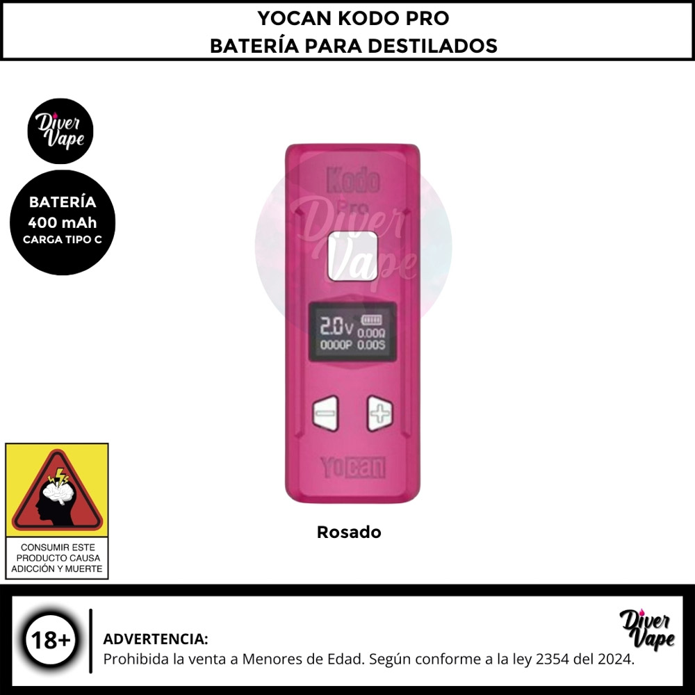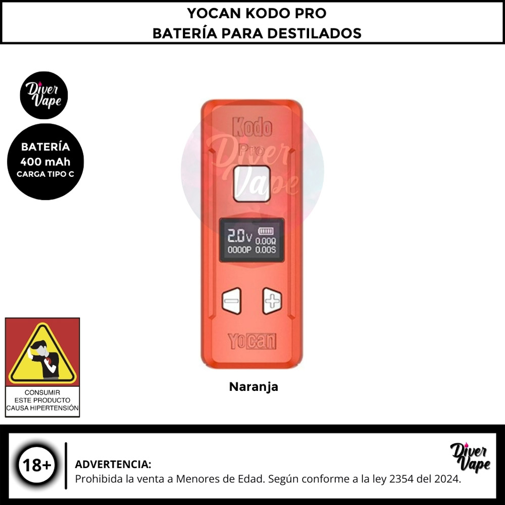 Yocan Kodo Pro Batería, es un mod ultramoderno con una batería recargable de 400 mAh, compatible con diferentes tipos de cartuchos gracias a su conexión roscada 510. El Kodo Pro cabe en la palma de la mano, lo que facilita su manejo, e incluye un indicador LED integrado para controlar el estado de la batería y la opción de ajustar el voltaje. Ideal para tus destilados.